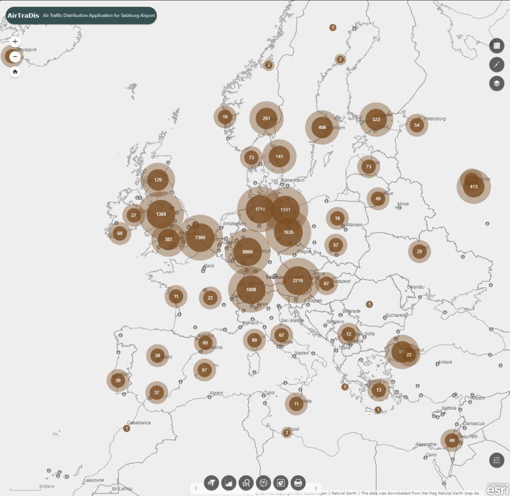 The consequences of COVID-19 pandemic lead to drastic changes in flight traffic. Therefore, the web application developed in this course had the goal to visualize the impact of the pandemic on the spatial distribution and the change of directional trends on flights going in and out of the Salzburg Airport during that time.