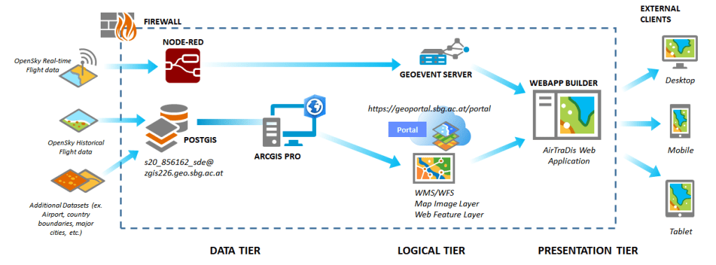 The resulting web application contains real-time data on air traffic, self-published WFS services, results of statistical calculations and interactive analysis tools.