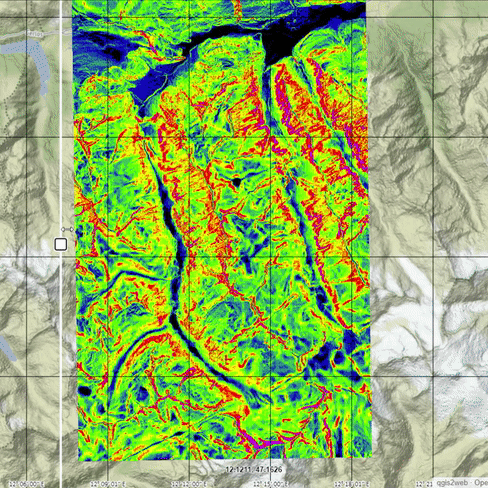 My tasks included research on currently available possibilities to create interactive web map content. Eventually, the JavaScript mapping library of OpenLayers was identified as promising and therefore tested extensively. For this project, a workflow for producing a large number of more or less similar web maps had to be found. For this purpose, automatically generated basic OpenLayers web maps from QGIS-projects were tested and additional required features added later manually. These additional functions included swipe and slide functionalities, timeseries animations and connections to Geoserver web services, which were either adapted from existing plugins or developed by myself: