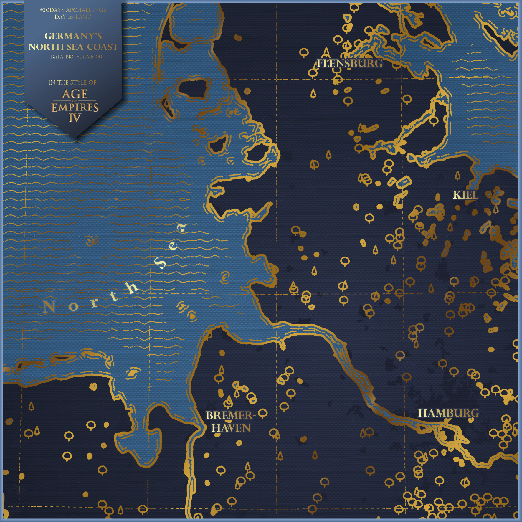 I am enjoying the recently released video game @AgeOfEmpires IV. I really like the maps that can be found in the game and decided to recreate this cartographic style for mapping a place in the real world.
