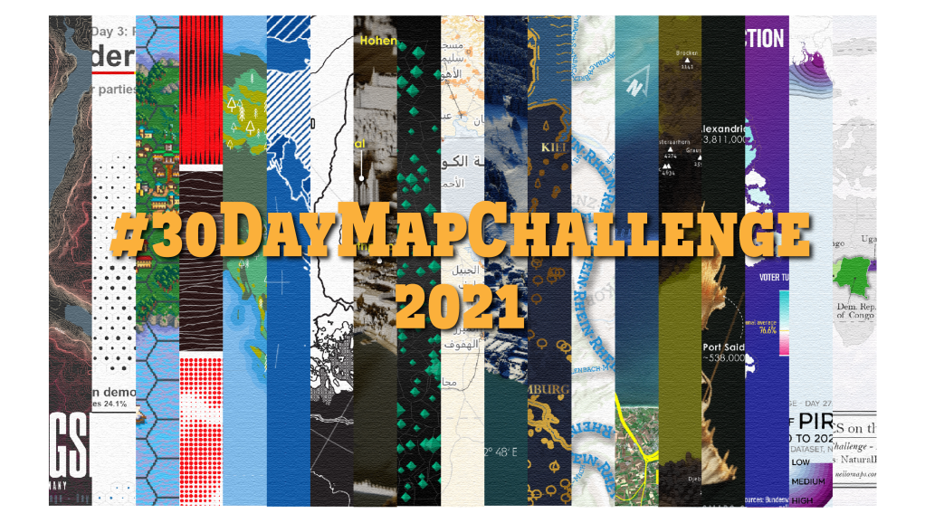 What does a jobless cartographer do? Make maps! This year’s #30DayMapChallenge by Topi Tjukanov came just at the right time while I was waiting for my first post-graduation job to begin. After watching the challenge in 2019 and 2020 enthusiastically as a spectator, I started preparing the maps just as this year’s topic got announced in the beginning of October 2021.